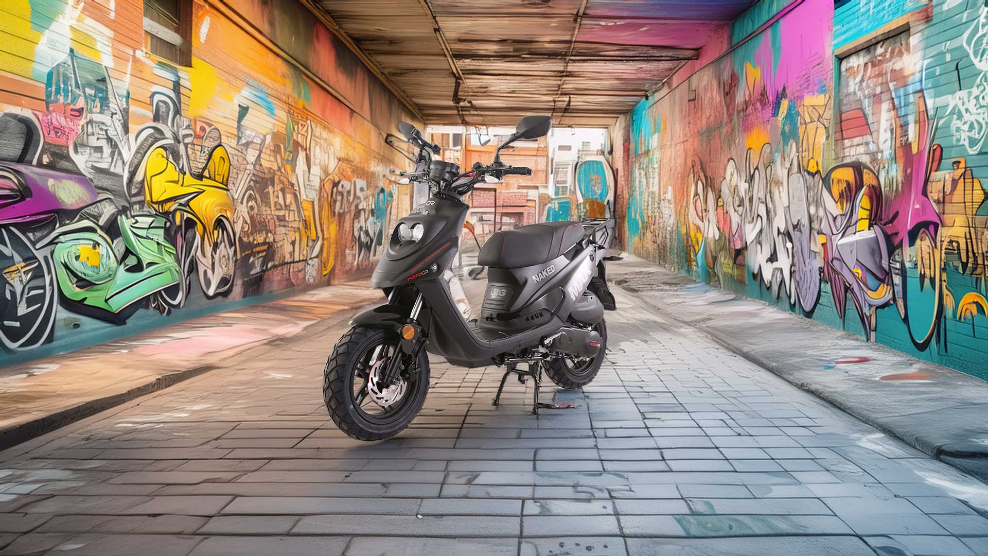 Big Max Naked är vår Stunt & Streetfighter-skoter, byggd för ett intensivt och fartfyllt stadsliv. Körupplevelsen och nöjesfaktorn är helt enkelt MAXAD!